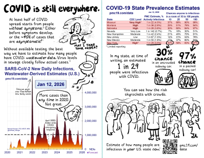 | 12 | Virus levels in sewage closely follow actual cases | Hoerger, M. (2025, September 1). “Technical Appendix.” PMC U.S. COVID-19 Report for September 1, 2025. Pandemic Mitigation Collaborative. http://www.pmc19.com/data |