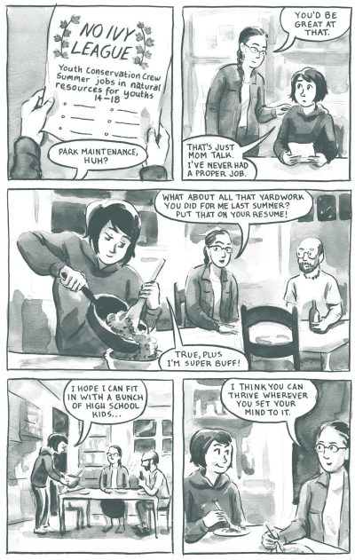 Readers will be right there with the protagonist for her rollercoaster of emotions. No Ivy League is a solid first chapter … that allows the artist’s strengths to really shine through. Hazel Newlevant is a cartoonist on the rise who has a deft understanding of how to make a reader care about a character.